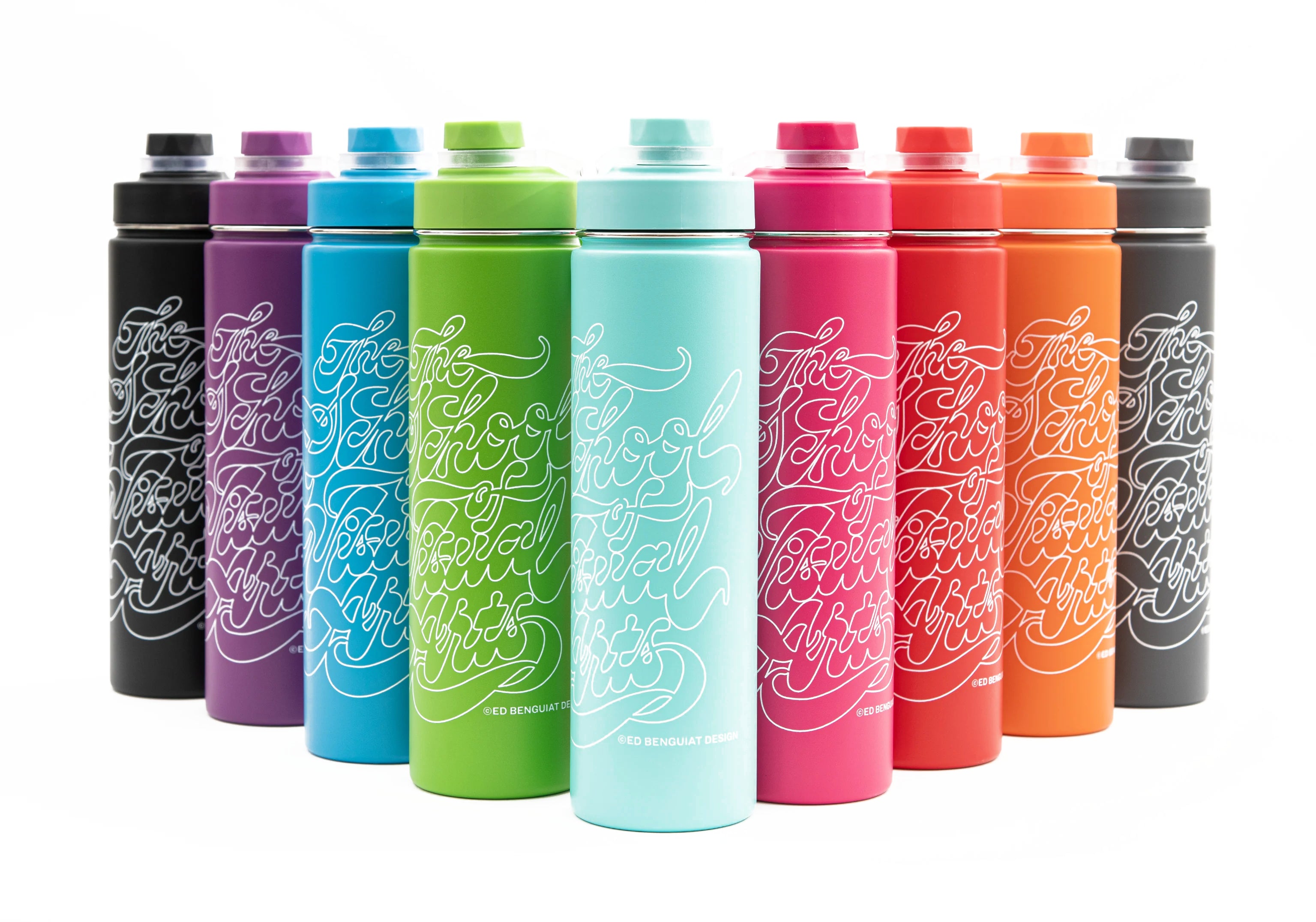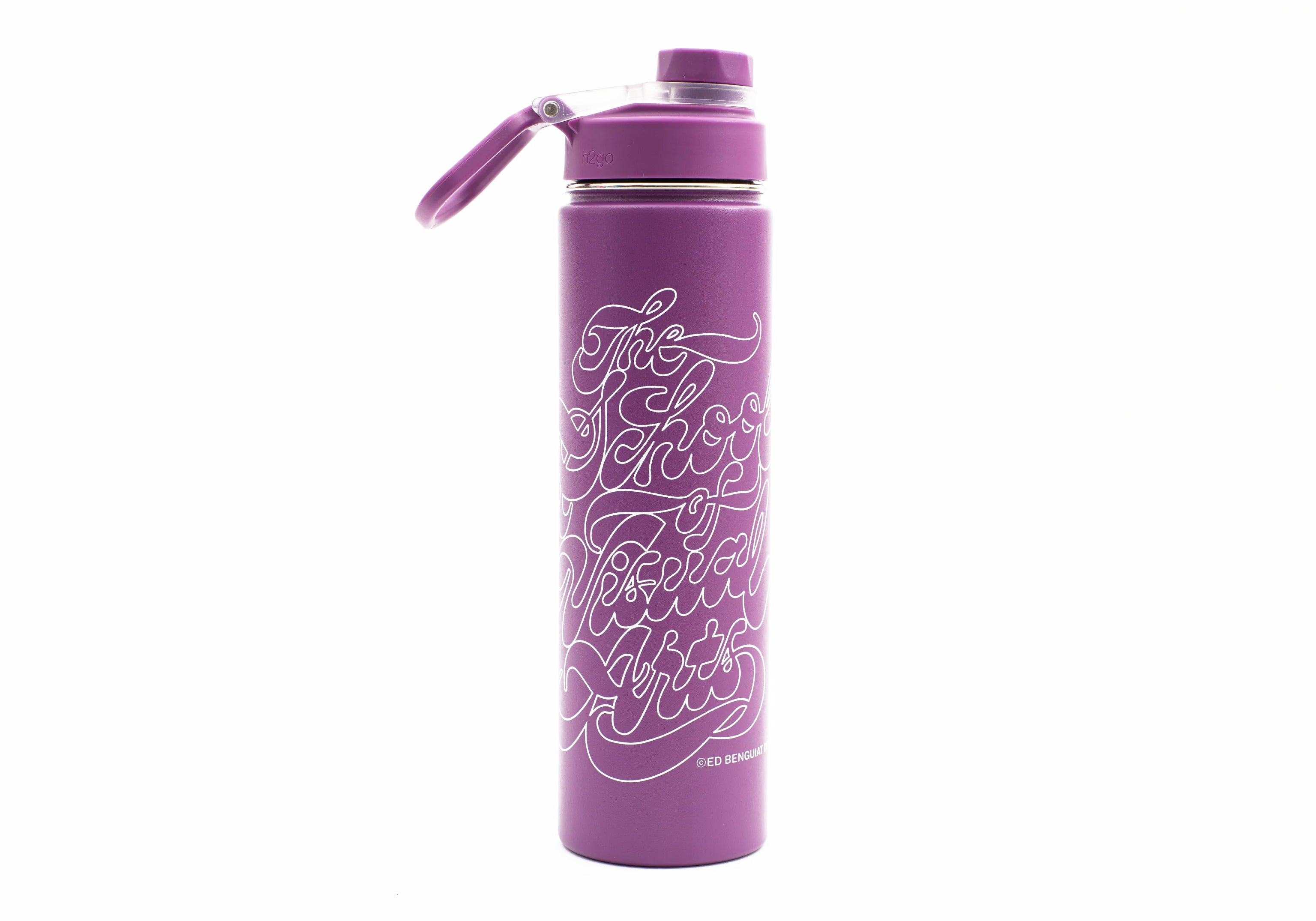 SVA Benguiat Script Logo h2go Conquer Water Bottle (Multiple Colors)